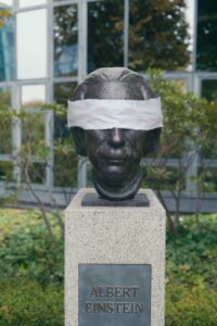 “Listen to the science!” is the slogan of the first series of photographs showing statues of famous scientists being gagged. Although scientists have been communicating scientific knowledge about the crisis for decades, politics and lobbying make uncomfortable scientific results inaudible.